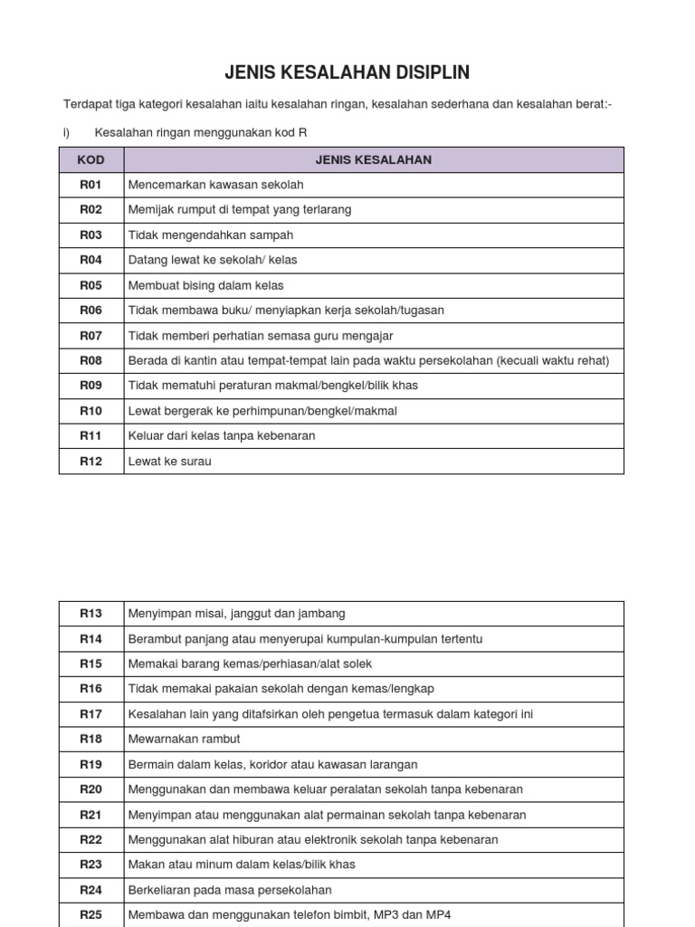 Senarai Jenis Kesalahan Yang Dilakukan Oleh Pelajar Pdf